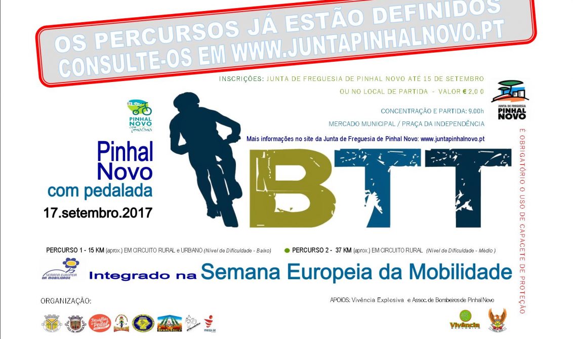 Estão abertas as inscrições para o Pinhal Novo com Pedalada. A prova está agendada para dia 17 de Setembro, prevendo-se a concentração dos atletas pelas 09h00, junto ao Mercado Municipal/ Praça da Independência.