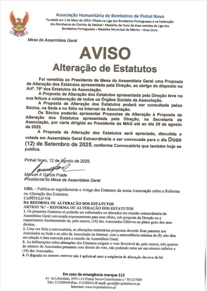 Corporação de Pinhal Novo pretende mudar estatutos